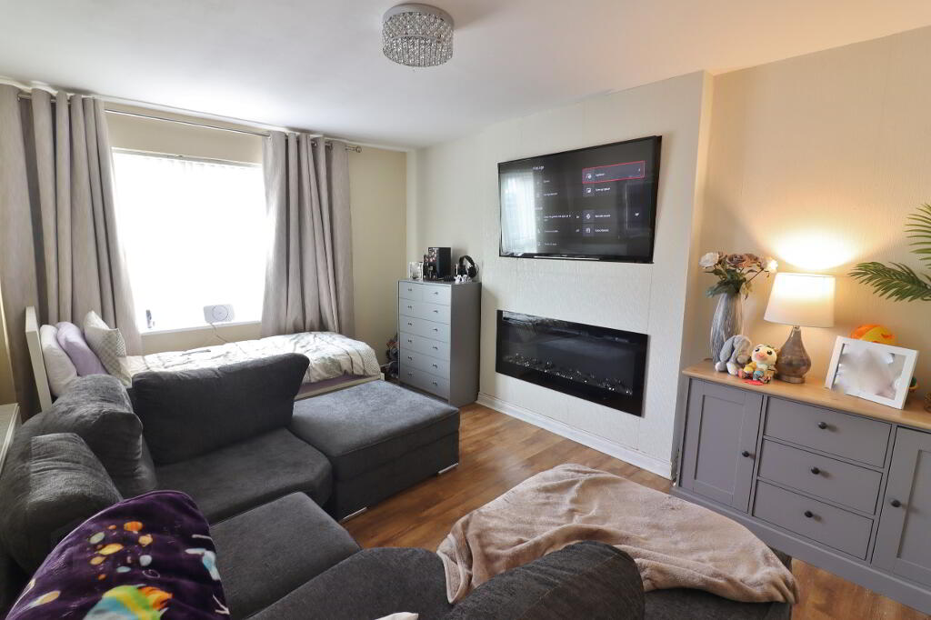 LOUNGE: 14’04” x 10’05” (To include chimney breast). Built in cloakroom, double panel radiator, power points, telephone point.