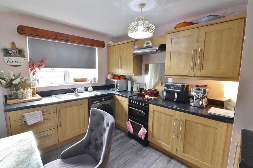 Accommodation comprises 3 bedrooms, lounge, fitted kitchen/dinette, bathroom & WC upstairs. This property also benefits from oil fired central heating and white Pvc double glazed windows. Outside there are enclosed front & back gardens part laid in lawn, part laid in paving stones with block built shed to rear.