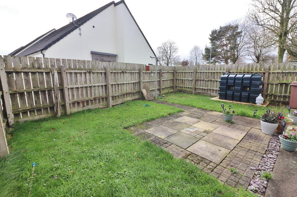 OUTSIDE: Enclosed front garden part laid in lawn, part laid in paving stones. Enclosed back garden part laid in lawn, part laid in paving stones with block built shed.