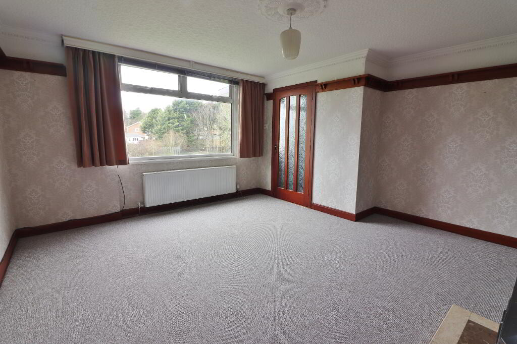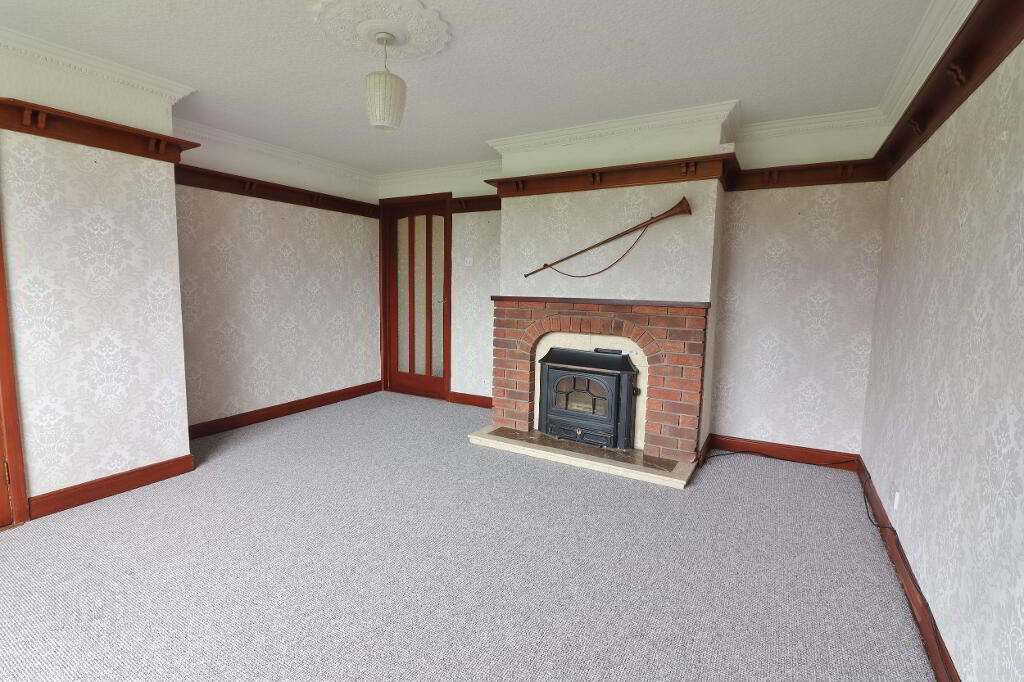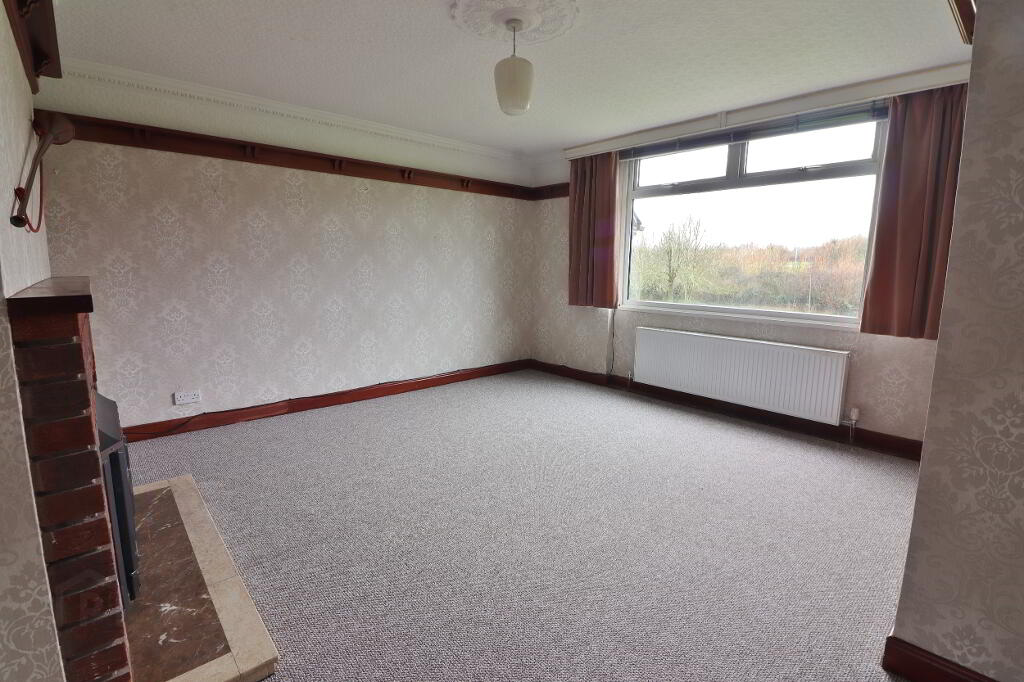 LOUNGE: 14’01” x 11’11” (To include fireplace). Alcove 7’05” x 2’0”. Glass front fireplace with brick surround and marble hearth, corniced ceiling, centre rose, double panel radiator, power points.