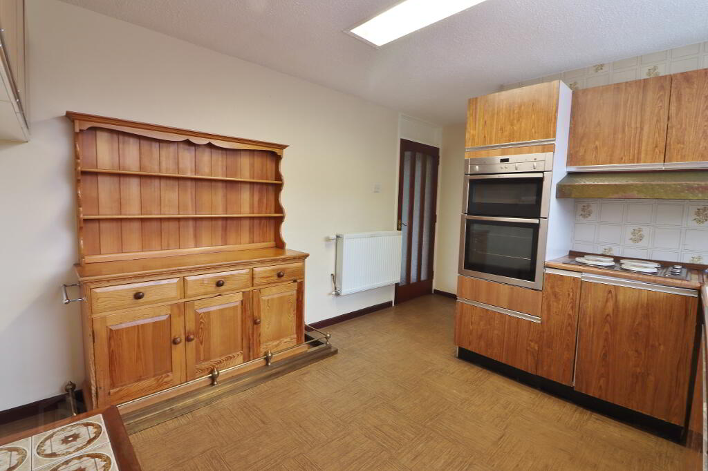 KITCHEN: 10’09” x 10’02” / 3’10” x 3’01”. Fitted kitchen with low and high level units, stainless steel sink unit with mixer taps and drainer, built in oven/grill, plumbed for washing machine, double panel radiator, power points.