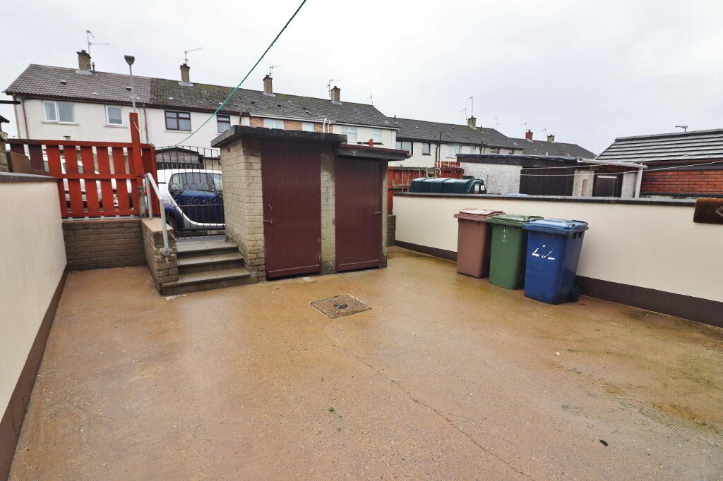 Accommodation comprises 3 bedrooms, spacious lounge, kitchen and newly fitted bathroom upstairs. This property also benefits from gas fired central heating and white Pvc double glazed windows throughout. Outside this property faces onto a pleasant green area with a part enclosed front garden. Enclosed back garden with 2 x brick built sheds.