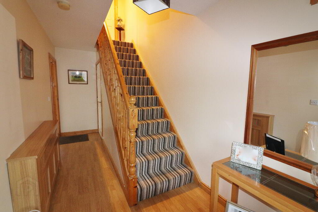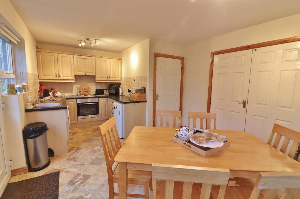 Accommodation comprises 3 bedrooms, lounge, open plan kitchen/dining area, wc downstairs and bathroom upstairs. This property also benefits from oil fired central heating and white Pvc double glazed windows throughout. Outside there is tarmac double driveway to the front of the property and very spacious enclosed back garden laid in lawn.